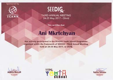 Հուլիս 14-18, 2013թ., Դուրբան: ԻՀ ՀԿ-ի վարչության անդամ Սիրանուշ Վարդանյանը մասնակցել է Դուրբանում կայացած ICANN-ի կոնֆերանսին: