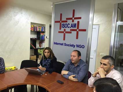 Մայիս 23, 2016. Երևան, Հայաստան. Իգոր Մկրտումյանը և Արման Ներսիսյանը մասնակցեցին ARMIX-ի վարչության նիստին, որտեղ քննակվել էր Akamai քեշ սերվերների տեղադրման հարցը: Մայիս 19, 2016. Երևան, Հայաստան. ԻՀ ՀԿ-ն ընդունեց 12 նոր անդամ՝ May 17, 2016. Իգոր Մկրտումյանը և Լիաննա Գալստյանը մասնակցեցին առ-ցանց Chapters AC հանդիպմանը հետևյալ օրակարգով՝ Մայիս 17, 2016. Մինսկ, Բելարուս. ԻՀ ՀԿ-ի տնօրեն Արման Ներսիսյանը և անդամ Արման Խաչատրյանը մասնակցեցին Բելարուսի IGF համաժողովին: Մայիս 13, 2016. Տեղի ունեցավ ISOC-ի Beyond the Net ծրագրի մենաշնորհ ստացողների եռամսյակային հարցազրույցը: Նպատակն էր՝ ծանոթանալ ISOC-ի նախագծերի առաջընթացի հետ: Ինչ է կատարված և ինչը պետք է լավացվի: Հարցազրույցը վարում էր Իլդա Սիմաոն, Internet Society Grants Manager: Իգոր Մկրտումյանը զեկուցեց "Ինտերներ ռադիո տեսողության պրոբլեմներ ունեցողների համար" ծրագրի առաջընթացի մասին: Մայիս 11, 2016. Երևան, Հայաստան. ԻՀ ՀԿ-ն ընդունեց 17 նոր անդամ՝ Մայիս 10, 2016. Երևան, Հայաստան. Տեղի ունեցավ ԻՀ ՀԿ-ի վարչության նիստ հետևյալ օրակարգով՝ Մայիս 5, 2016. Երևան, Հայաստան. Տեղեկատվությունը ԻՀ ՀԿ-ի նախագծի մասին ”Internet Radio for visually impaired people” հրապարակվել է Համաշխարհային Ինտերնետ Միության կայքում: Մայիս 4, 2016. Երևան, Հայաստան. ՀՀ տրանսպորտի և կապի նախարարությունում կայացավ «.հայ» հայատառ դոմենային գոտու բացման շնորհանդեսը: Մայիս 3, 2016. Երևան, Հայաստան. ԻՀ ՀԿ-ն և Հայաստանի կույրերի միության մշակույթի տունը համաձայնագիր ստորագրեցին Ինտերնետի ոլորտում համագործակցությամ մասին: Մայիս 2, 2016. Երևան, Հայաստան. ԻՀ ՀԿ-ն ընդունեց 13 նոր անդամ՝ Ապրիլ 22-23. Բյուրական, Հայաստան. ԻՀ ՀԿ-ն հովանավորել էր NASA Space Apps Challenge Armenia 2016 միջոցառումը, որը նվիրված էր տիեզերական կիրառական ծրագրերի մշակմանը: ԻՀ ՀԿ-ի վարչության անդամ Կարեն Երզնկանյանը եղել է ժյուրիի անդամ: Ապրիլ 22. Բելգրադ, Սերբիա. ԻՀ ՀԿ-ի վարչության անդամ Լիաննա Գալստյանը և անդամներ Հովհաննես Աղաջանյանը, Անի Դալաքյանը մասնակցեցին երկրորդ տարեկան SEEDIG-ի համաժողովին: Ապրիլ 15, 2016. Մադրիդ, Իսպանիա. ԻՀ ՀԿ-ի վարչության անդամ Աննա Կարակհանյանը մասնակցեց European Chapter Advocacy հանդիպմանը Մադրիդում: Ապրիլ 15, 2016. Երևան, Հայաստան. ԻՀ ՀԿ-ն և Մեդիակրթության կենտրոնը համաձայնագիր ստորագրեցին Ինտերնետում երեխաների անվտանգության ապահովման համատեղ աշխատանքների մասին: Ապրիլ 13, 2016. Երևան, Հայաստան. Տեղի ունեցավ ԻՀ ՀԿ-ի վարչության նիստ, որտեղ վարչության անդամ Լիաննա Գալստյանը պատմեց իր գործուղման մասին ICANN55 համաժողովին Մառաքեշում: Նիստի ժամանակ Armenian Script Generation Panel -ի անդամներին հանձնվեցին ICANN-ի կողմից տրամադրված Նվաճման Սերտիֆիկատներ: Ապրիլ 10. Երևան, Հայաստան. ԻՀ ՀԿ-ն որոշեց 2016 Հայկական Ինտերնետ Կառավարման Համաժողովը անցկացնել 2016թ Հոկտեմբերի 5-ին և հայտարարեց թեմաների հավաքագրում: Մարտ 22, 2016. Երևան, Հայաստան. ԻՀ ՀԿ-ի անդամ Նարինե Խաչատրյանը և փոխնախագահ Գրիգորի Սաղյանը մասնակցեցին Հանրային հեռուստատեսության առավոտյան հարցազրույցին "Երեխաների անվտանգությունը Ինտերնետում " թեմայով: Մարտ 21, 2016. Երևան, Հայաստան. ԻՀ ՀԿ-ի փոխնախագահ Գրիգորի Սաղյանը, վարչության անդամ Լիանա Գալստյանը և անդամ Կարեն Գասպարյանը մասնակցեցին "Cyber security Sector Development in Armenia. From fragmental regulation to strategy." միջազգային սեմինաին: Մարտ 11, 2016. Երևան, Հայաստան. ԻՀ ՀԿ-ում կայացավ Ապահով Համացանց ծրագրի խորհրդի նիստը, որըհաստատեց 2016 թ. գործողությունների ծրագրի փոփոխութոյունները: : Մարտ 9, 2016. Մարաքեշ, Մարոկկո. ԻՀ ՀԿ-ի Ինտերնետում հայկական լեզվի զարգացման խումբը պարգևատրվեց ICANN-ի վկայագրով: Մարտ 5-10, 2016. Մարաքեշ, Մարոկկո. ԻՀ ՀԿ-ի վաարչության անդամներ Սիրանուշ Վարդանյանը (APRALO-ի նախագահ) և Լիաննա Գալստյանը մասնակցեցին ICANN55 համաժո